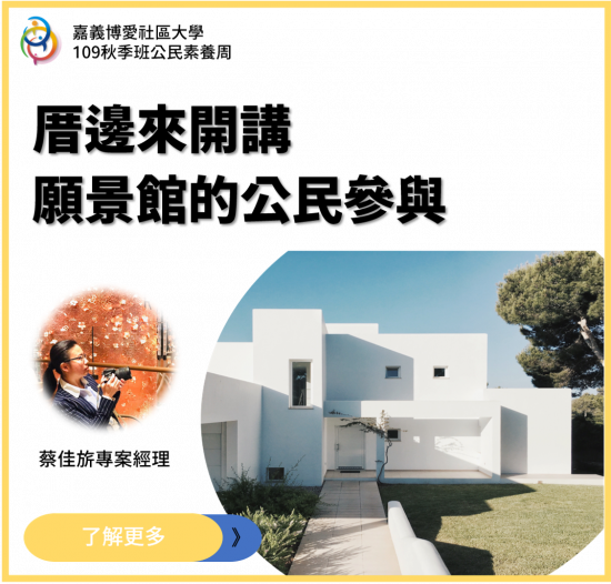【109秋季班公告】社會參與:不ㄧ樣的日常生活