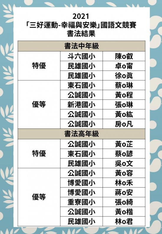 頒獎日期另行通知!