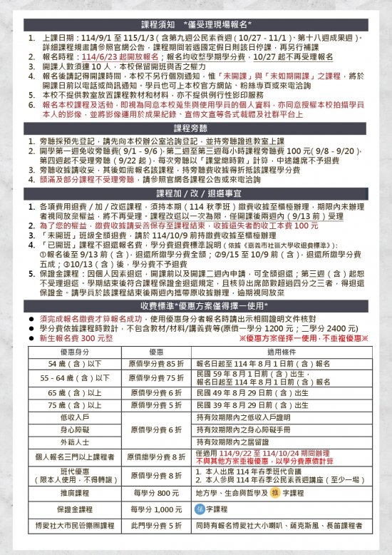 【 ○●114秋季班 新課程/優惠推廣課程●○】