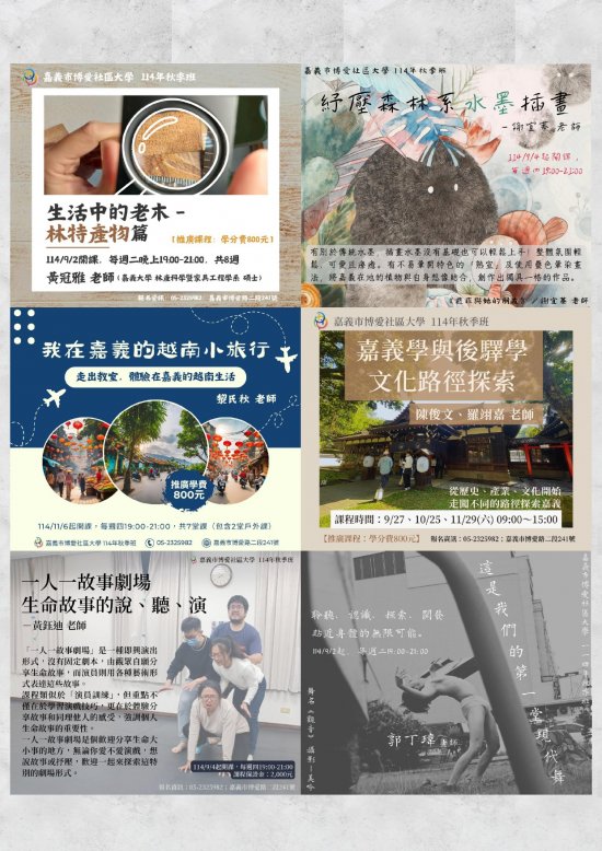 【嘉義市博愛社區大學|114年秋季班課程招生中】